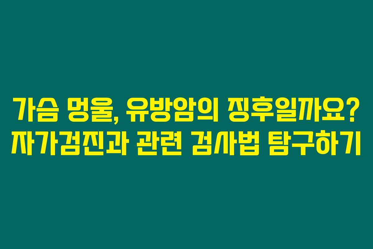 대부분의 경우 가슴 멍울은 유방암이 아니라 다른 질환으로 인한 것이 많아요. 하지만 이상이 느껴진다면 전문가와 상담하는 것이 중요합니다.