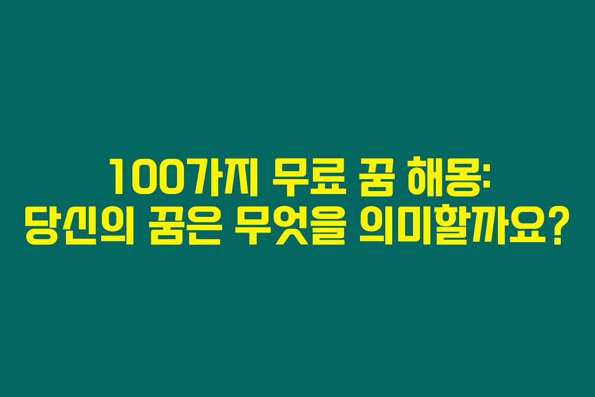 100가지 무료 꿈 해몽: 당신의 꿈은 무엇을 의미할까요?