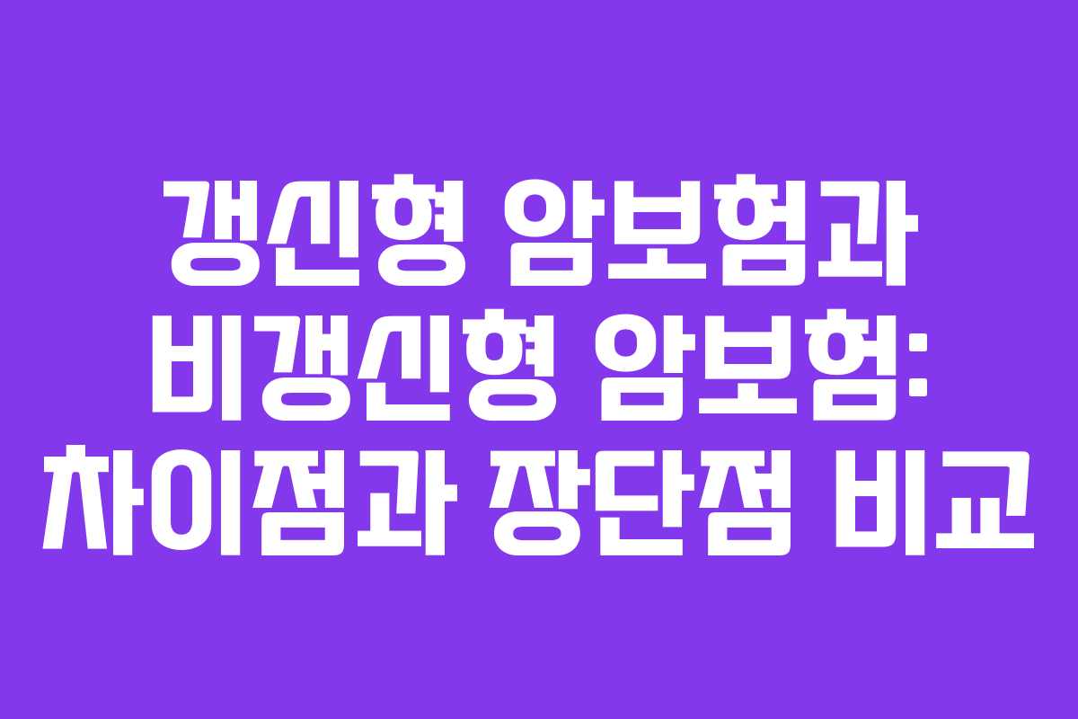 암보험은 암 진단 시 경제적 부담을 줄여주는 중요한 보험 상품입니다. 이 보험은 갱신형과 비갱신형으로 나뉘며, 각각의 특징과 장단점을 이해하는 것이 필요합니다. 이번 글에서는 두 가지 형태의 암보험의 차이점과 장단점을 비교해보겠습니다.
