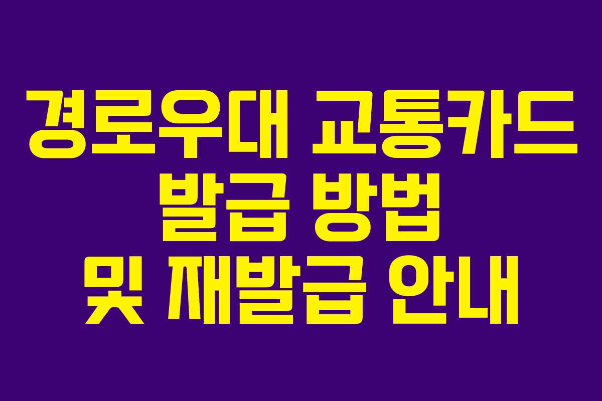 경로우대 교통카드는 고령자분들이 교통비 부담을 덜 수 있도록 도와주는 유용한 카드입니다. 이번 글에서는 경로우대 교통카드를 신청하는 방법과 절차, 재발급 받는 방법에 대해 자세히 알아보겠습니다.