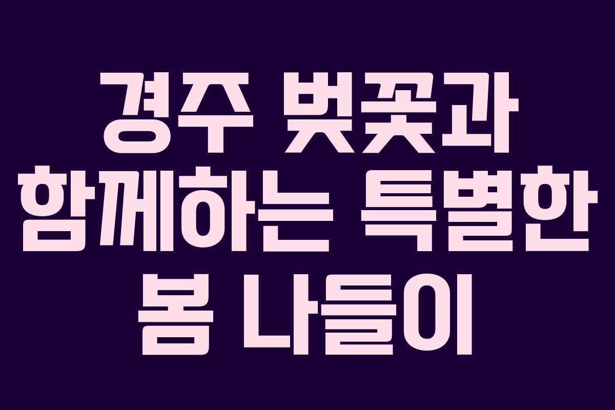 - 경주 벚꽃을 즐기기 위한 실전 가이드