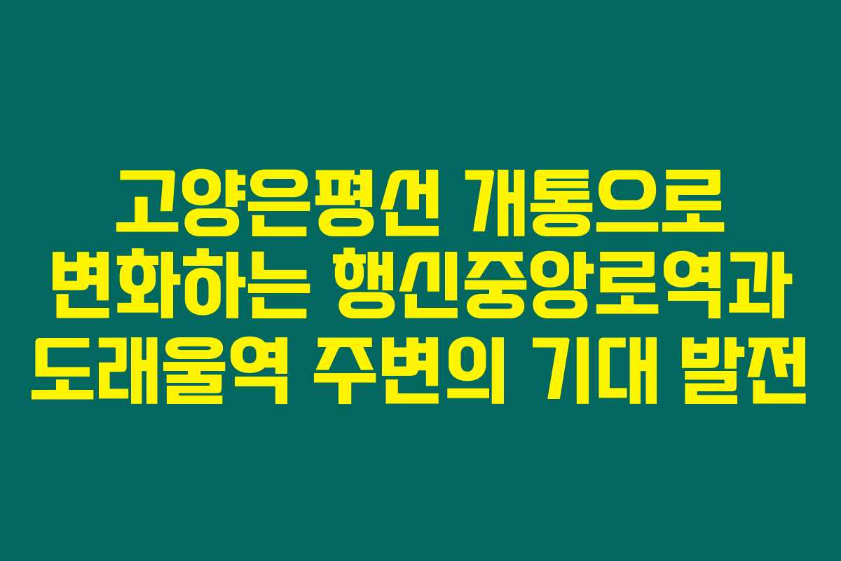 제가 직접 체크해본 바로는 고양은평선의 개통이 수도권 서북부 지역의 발전에 중대한 영향을 미칠 것으로 보입니다. 특히 행신중앙로역과 도래울역의 신설은 단순한 교통편의 증진을 넘어, 지역 경제 활성화와 주민들의 삶의 질을 향상시키는 긍정적인 변화를 가져올 전망입니다. 아래를 읽어보시면, 이 두 역 주변의 발전과 미래 전망에 대해 상세히 알아볼 수 있습니다.
