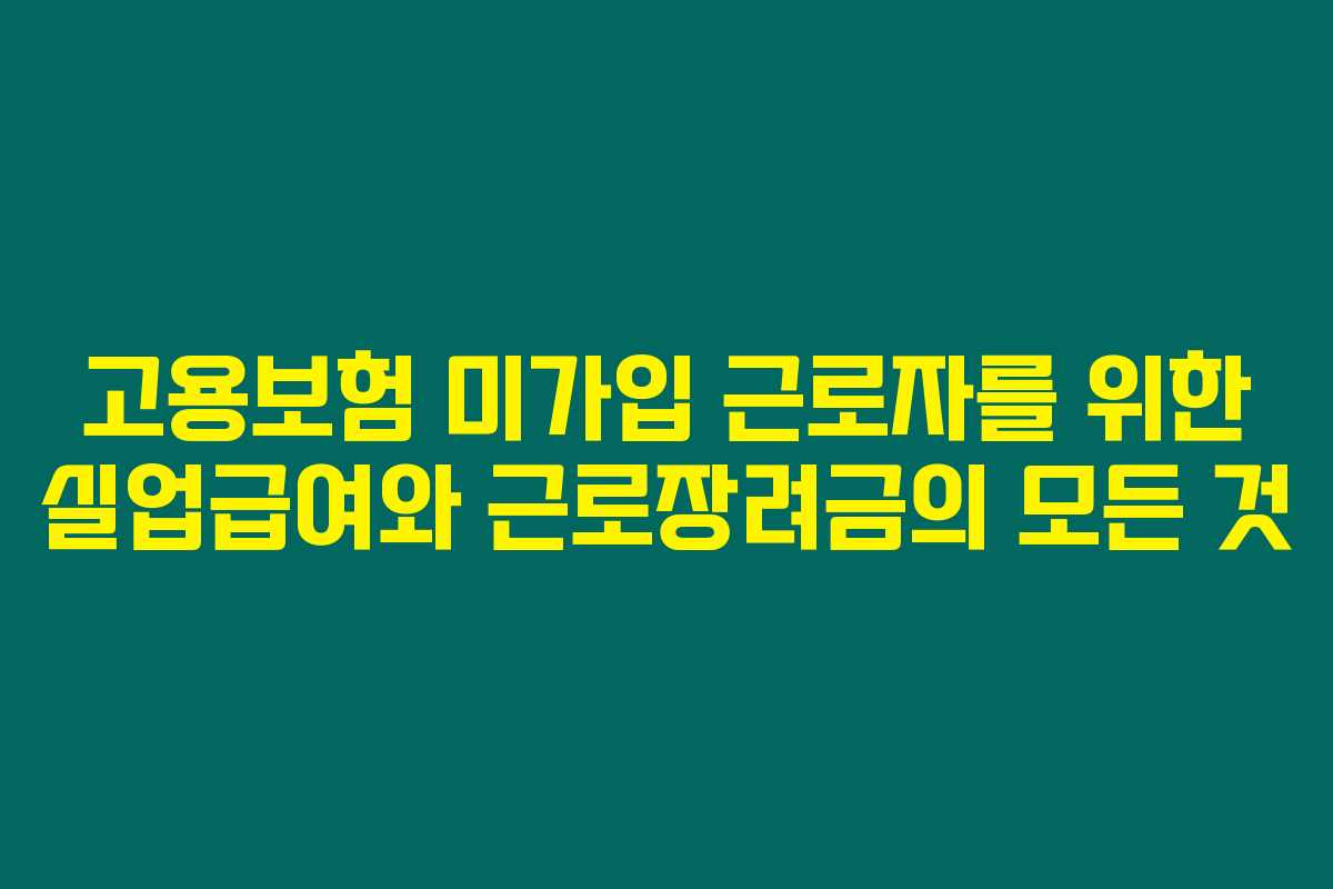 고용보험 미가입 근로자는 실업급여를 받을 수 없지만, 근로장려금은 신청할 수 있습니다. 육아휴직은 고용보험 가입 여부에 따라 달라지므로, 자신이 어떤 정책을 가지고 있는지 잘 살펴보는 것이 중요해요. 이를 통해 필요한 지원을 받을 수 있는 방법을 찾아보시길 바래요.