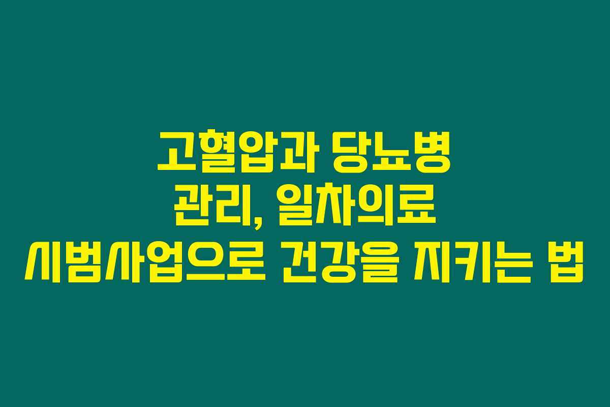 제가 직접 알아본 바로는 고혈압과 당뇨병을 앓고 있는 분들에게 큰 도움이 되는 일차의료 만성질환관리 시범사업이 진행되고 있어요. 이 시범사업은 근본적으로 만성질환 관리를 향상시키고, 효율적인 의료서비스를 제공하기 위해 시작되었으며, 이와 함께 건강생활실천지원금 신청으로 건강관리에 대한 동기도 제공하고 있습니다. 아래를 읽어보시면 이 두 가지 사업이 여러분의 건강에 얼마나 긍정적인 영향을 미칠 수 있는지 알 수 있을 거예요.