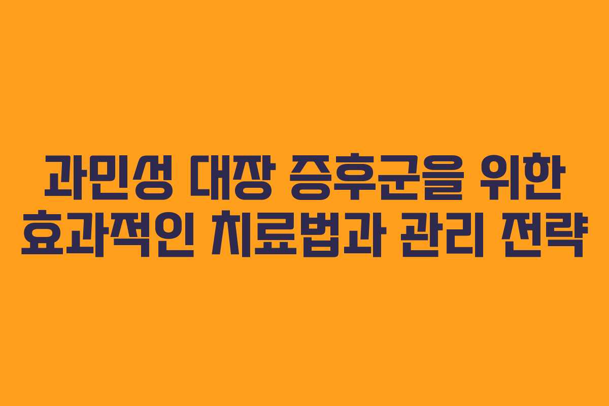 - 과민성 대장 증후군 치료법: 실전 전략 및 접근법