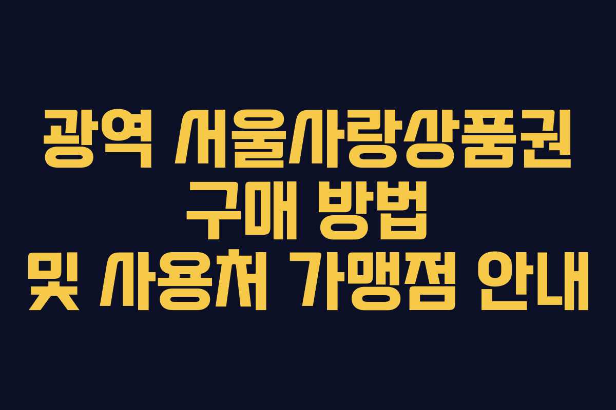 광역 서울사랑상품권은 서울시에서 발행하는 전자 상품권으로, 지역 경제 활성화를 목적으로 하고 있습니다. 이번 포스팅에서는 광역 서울사랑상품권의 구매 방법과 사용처, 자주 묻는 질문을 자세히 설명하겠습니다.