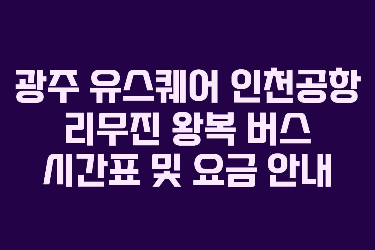 - 🤔 광주 유스퀘어 인천공항 리무진 버스에 대해 궁금한 것들 (FAQ)