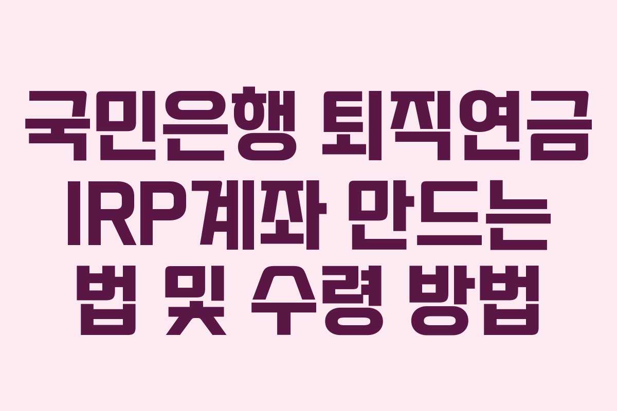 국민은행 퇴직연금 IRP계좌 만드는 법 및 수령 방법