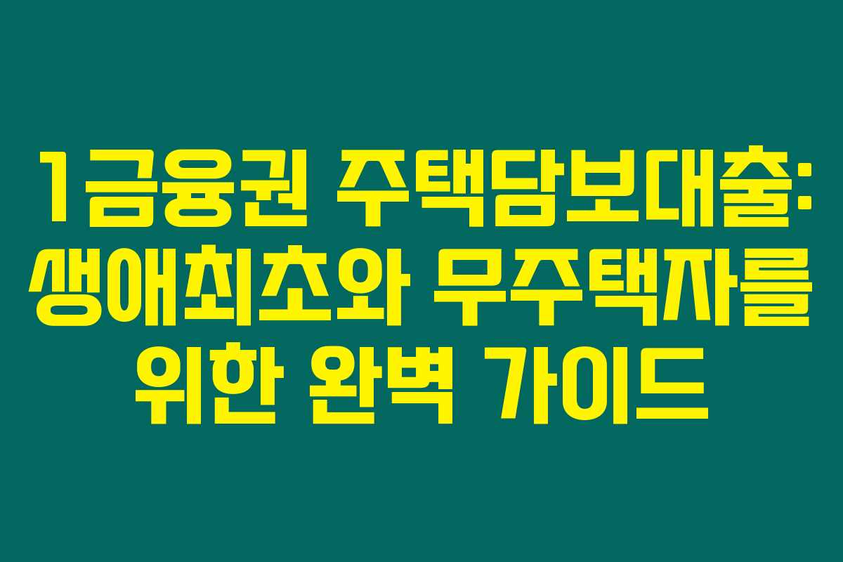 주택담보대출은 주택 구매를 계획하는 많은 사람들에게 필수적인 재무 도구입니다. 특히 1금융권 주택담보대출은 그 조건과 혜택이 매우 다양하여 접근성이 좋죠. 아래를 읽어보시면, 생애 최초 대출과 무주택 대출의 구체적인 조건에 대해 상세히 알아보실 수 있습니다.