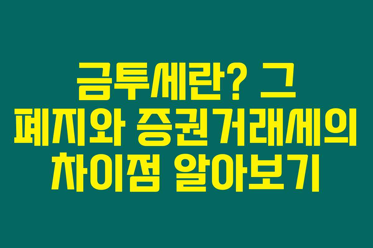 금투세에 대해 궁금하신가요? 최근 주식 시장의 불안과 함께 금투세 논란이 뜨거운 이슈로 부각되고 있습니다. 금투세는 주식, 채권 등 다양한 금융상품의 수익에 대해 부과되는 세금으로, 이에 따라 발생하는 여러 가지 쟁점들을 살펴보겠습니다. 아래를 읽어보시면 금투세가 무엇인지, 그 폐지의 필요성과 증권거래세와의 차이점까지 자세히 알 수 있을 거예요.