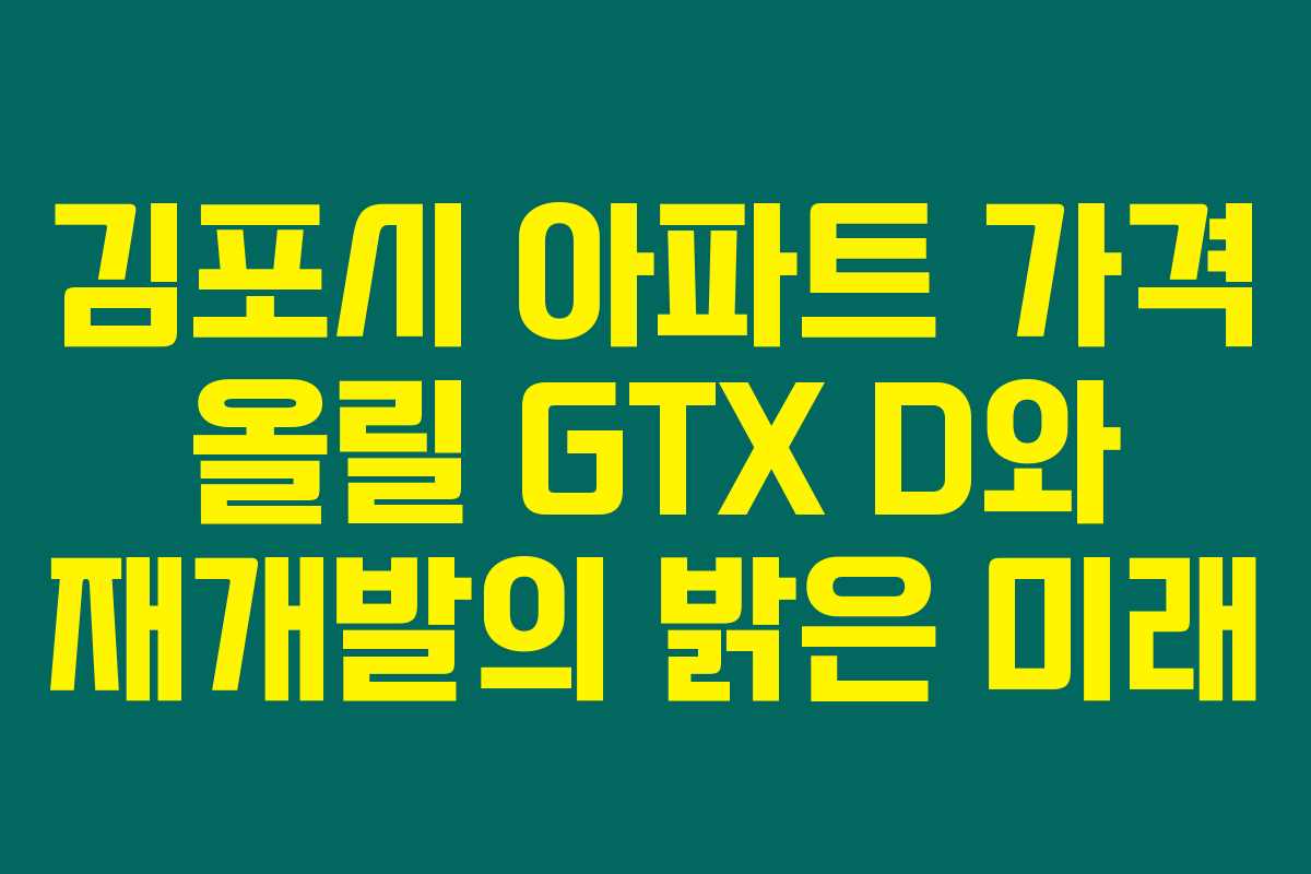 제가 직접 리서치한 바로는, 최근 김포시에 대한 관심이 급증하고 있습니다. 이번 포스팅에서는 김포시 아파트 가격 전망에 대해 자세히 알아보려 합니다. 특히, GTX D와 5호선 연장, 그리고 재개발의 영향을 중심으로 다룰 예정입니다. 아래를 읽어보시면 김포시에서 어떤 아파트가 투자 가치가 있는지에 대한 유용한 정보가 있을 거예요.