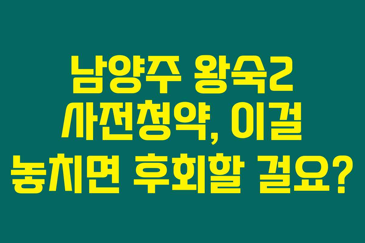 2022년 5차 사전청약이 시작되었다는 소식 들어보셨나요? 특히 남양주 왕숙2 지구의 청약은 신혼부부와 예비 신혼부부의 주택 마련에 큰 기회를 줄 수 있을 텐데요. 그렇다면, 이 기회를 놓치면 어떨까요? 아래를 읽어보시면 남양주 왕숙2 사전청약의 모든 정보를 쉽게 정리해드릴게요!