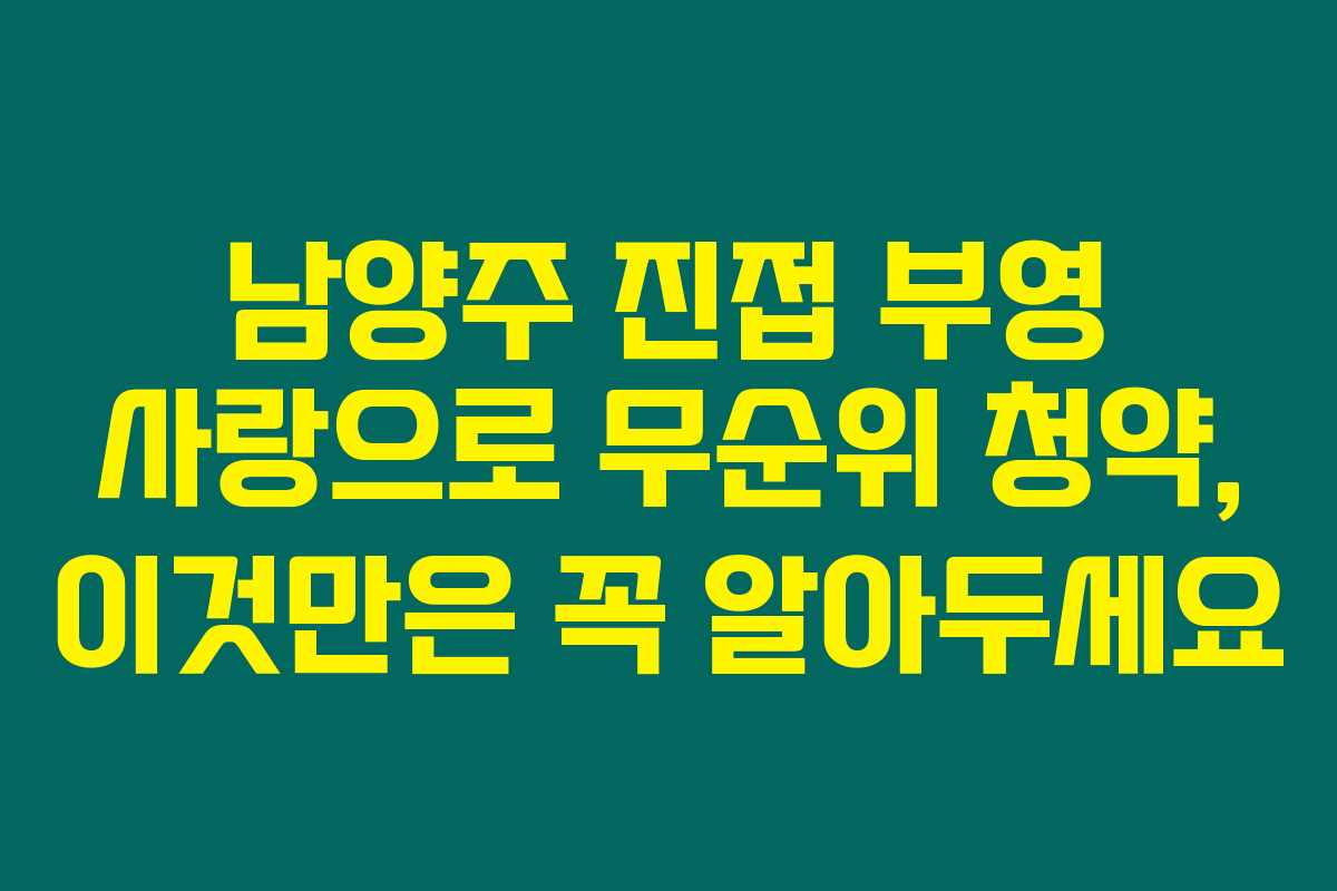 남양주 진접 부영 사랑으로 무순위 청약, 이것만은 꼭 알아두세요
