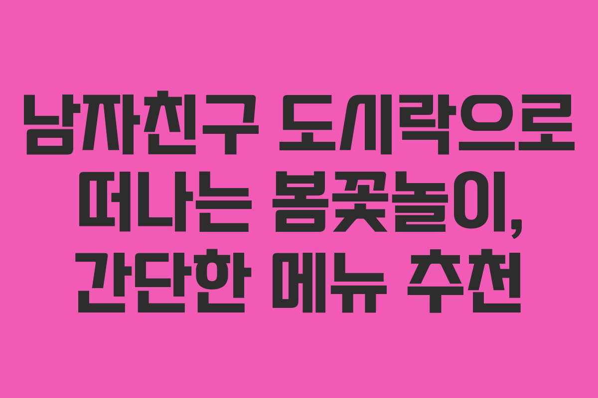 벚꽃이 만개하는 아름다운 봄날, 소중한 사람과 함께하는 도시락은 더욱 특별하다. 사랑이 가득 담긴 도시락을 준비해 꽃구경을 떠나는 것은 정말 행복한 경험이 될 것이다. 간단하지만 정성 가득한 메뉴로 남자친구와 함께하는 즐거운 시간을 만들어보자. 이 도시락이 여러분의 소중한 순간을 더욱 빛나게 해줄 것이다.