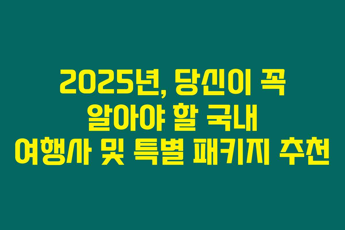 2025년에는 감성을 채우는 여행이 필수적이에요. 제가 직접 경험해본 바로는, 믿고 선택할 수 있는 국내 여행사를 통해 매번 새로운 이야기를 만들어 가는 것이 중요하답니다. 오늘 소개한 여행사 및 패키지들이 여러분의 특별한 여행 경험에 도움이 되었으면 좋겠어요.