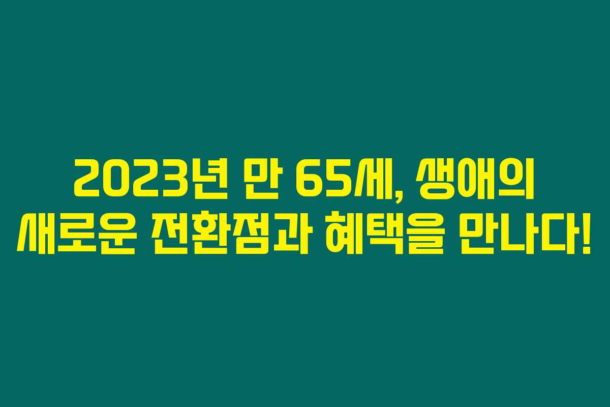 2023년 만 65세, 생애의 새로운 전환점과 혜택을 만나다!