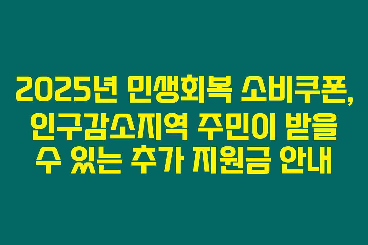 제가 직접 검색해본 결과로는, 2025년에는 민생회복 소비쿠폰과 관련하여 인구감소지역 주민들에게 상당한 추가 지원이 이루어질 예정이에요. 특히 최대 8만 원의 추가 지급이 이루어지는 만큼, 해당 지역 주민들에게 큰 도움이 될 것으로 보입니다. 아래를 읽어보시면, 이 내용에 대해 더 자세히 알 수 있습니다.