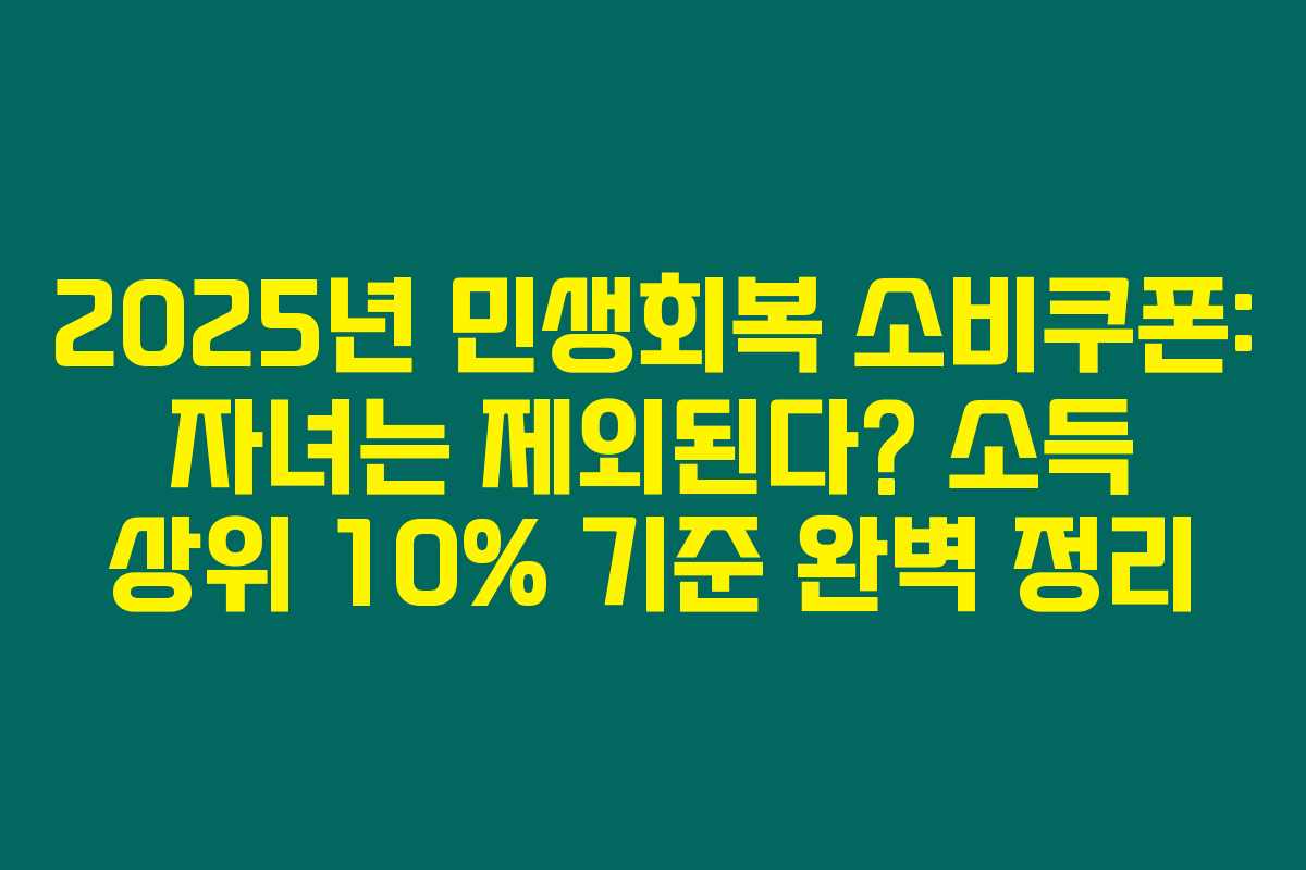 2025년 민생회복 소비쿠폰은 전 국민을 대상으로 하지만, 소득 상위 10% 기준으로 인해 자녀 지원에 제한이 있을 수 있습니다. 소비쿠폰의 지급 금액, 방법, 사용처 등을 잘 이해하고 이용하시면 많은 도움을 받을 수 있을 거예요. 더 궁금한 점이 있으면 언제든지 질문해 주세요!