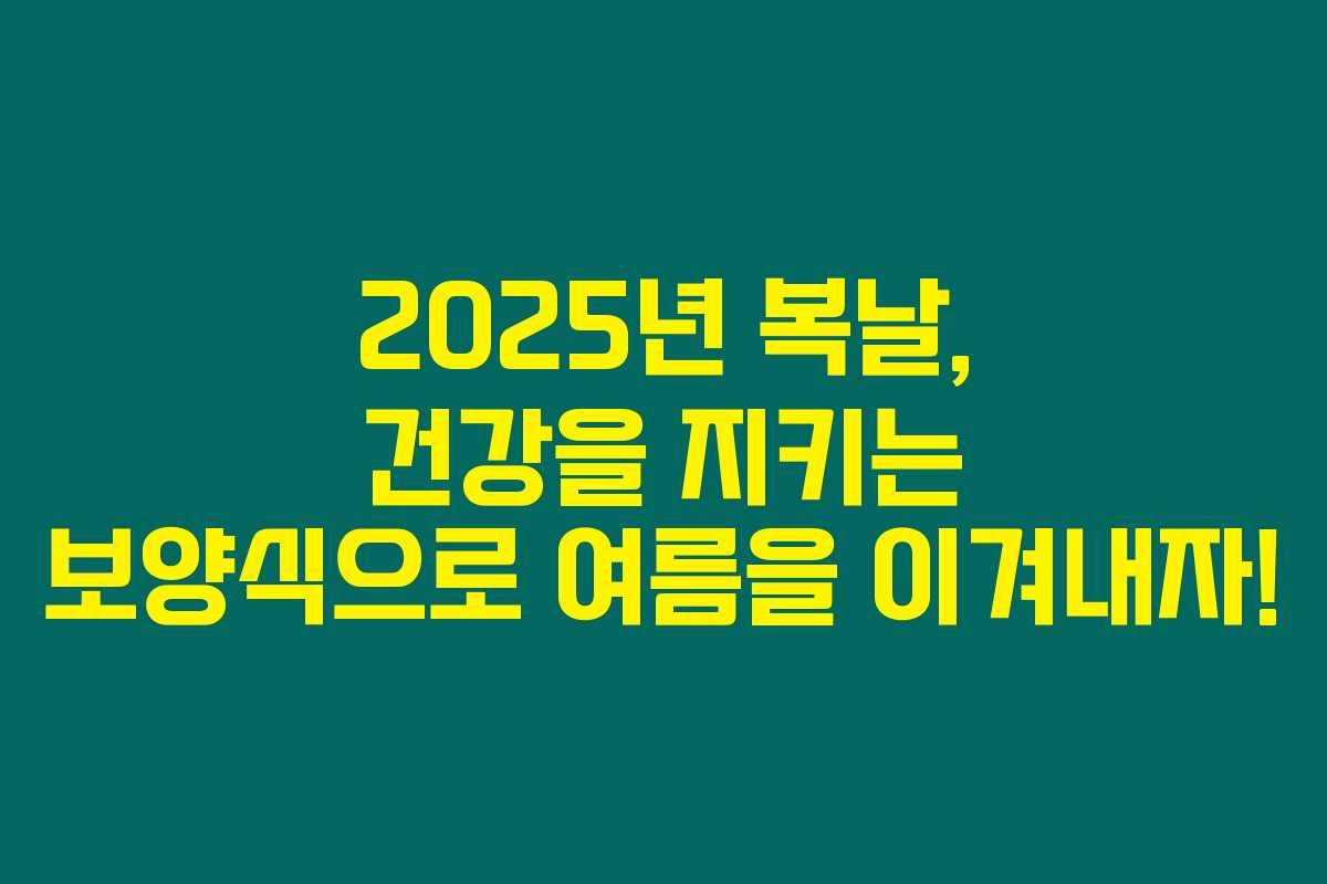 2025년 복날은 7월 20일 초복부터 8월 9일 말복까지입니다. 이 시기는 건강을 챙기기에 좋은 날로, 여러분의 건강을 위한 보양식을 미리 준비해두는 것이 좋답니다. 여름철의 더위를 잘 견디고, 건강한 시간을 보내시길 바랍니다.