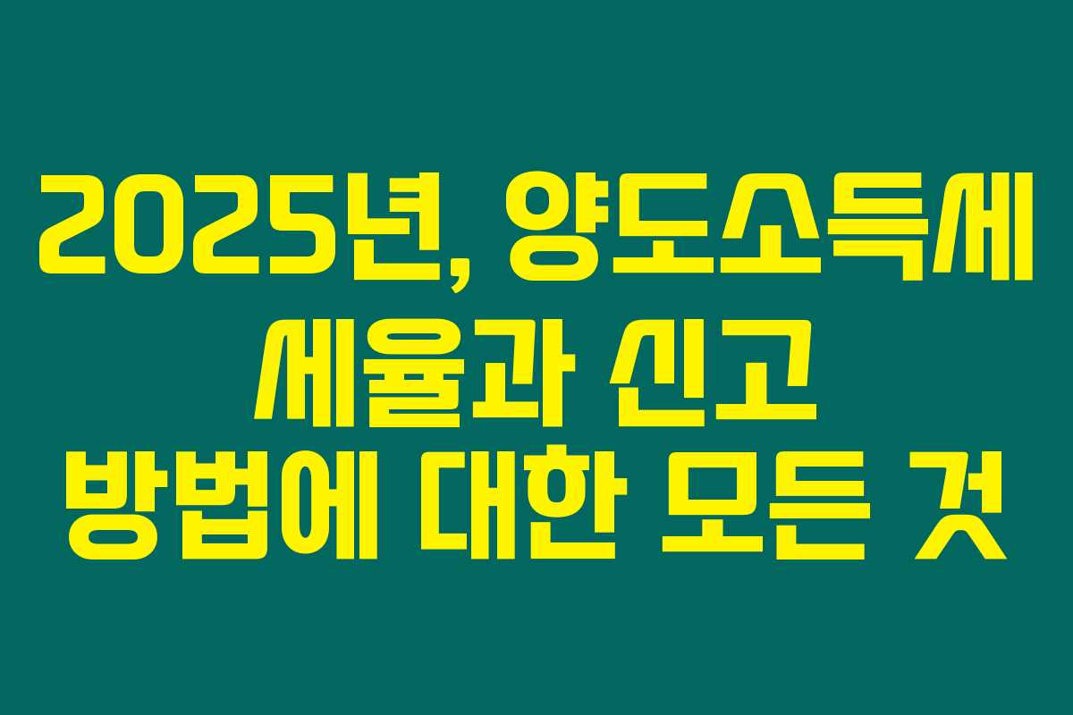 양도소득세는 부동산 거래시에 반드시 염두에 두어야 할 중요한 부분이에요. 2025년 기준의 세율, 신고 방법과 필요한 서류를 잘 숙지하시고, 꼼꼼하게 준비하셔서 부동산 거래에 어려움이 없도록 하세요. 추가 정보나 궁금한 점이 있으시면 언제든 질문해 주세요!
