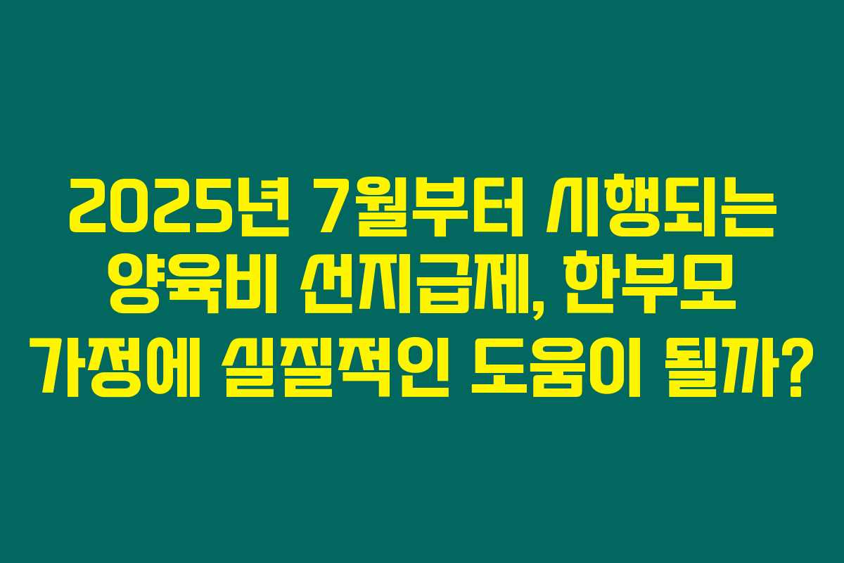 2025년 7월부터 시행되는 양육비 선지급제, 한부모 가정에 실질적인 도움이 될까?