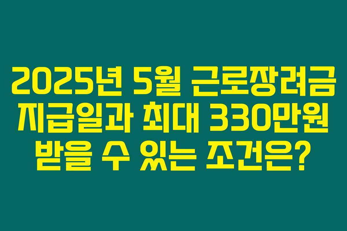 2025년 5월 근로장려금 지급일과 최대 330만원 받을 수 있는 조건은?
