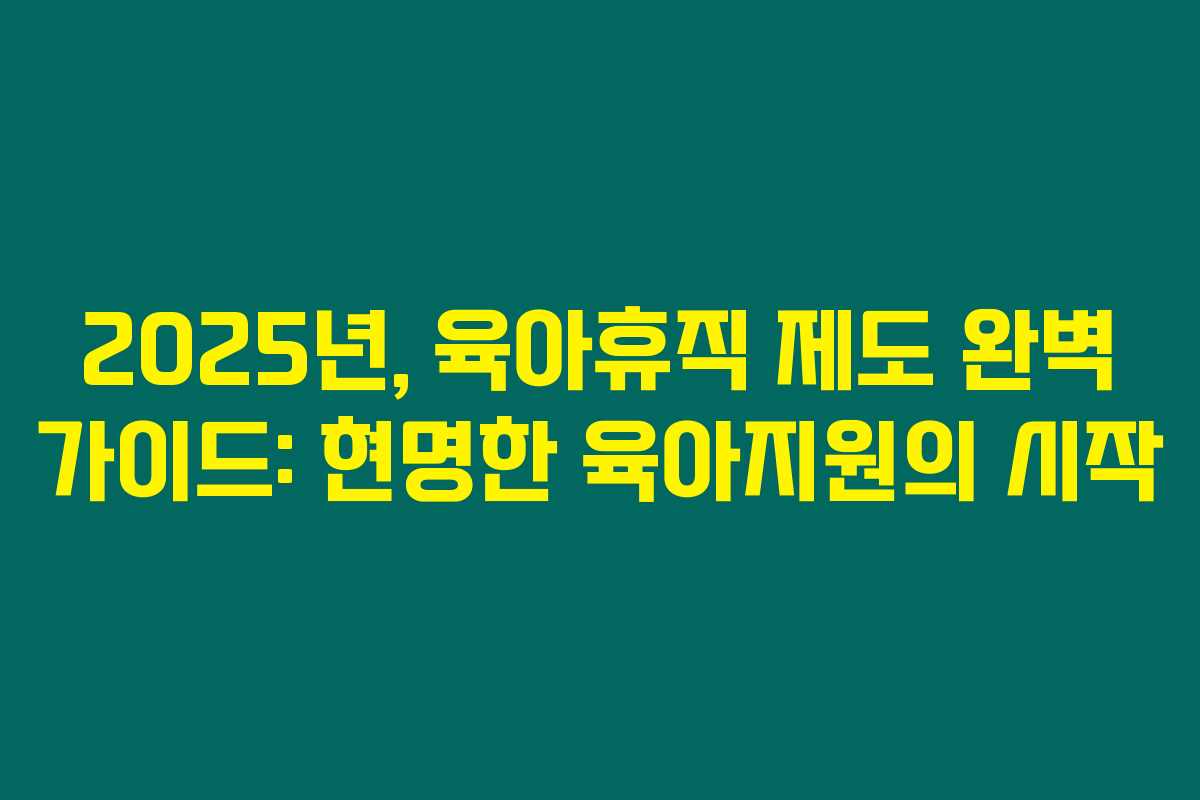 2025년, 육아휴직 제도 완벽 가이드: 현명한 육아지원의 시작
