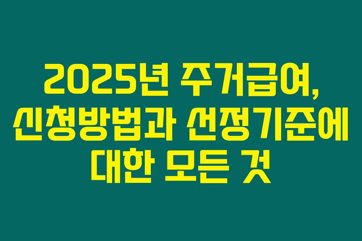 주거급여 선정 기준은 주로 소득, 재산, 가구 구성원 수 등을 기준으로 해요. 2025년에는 어떤 기준이 적용될지에 대해 제가 직접 조사해봤어요.