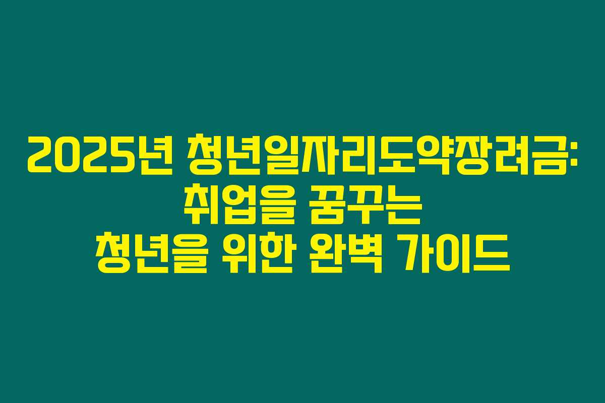 2025년 청년일자리도약장려금: 취업을 꿈꾸는 청년을 위한 완벽 가이드