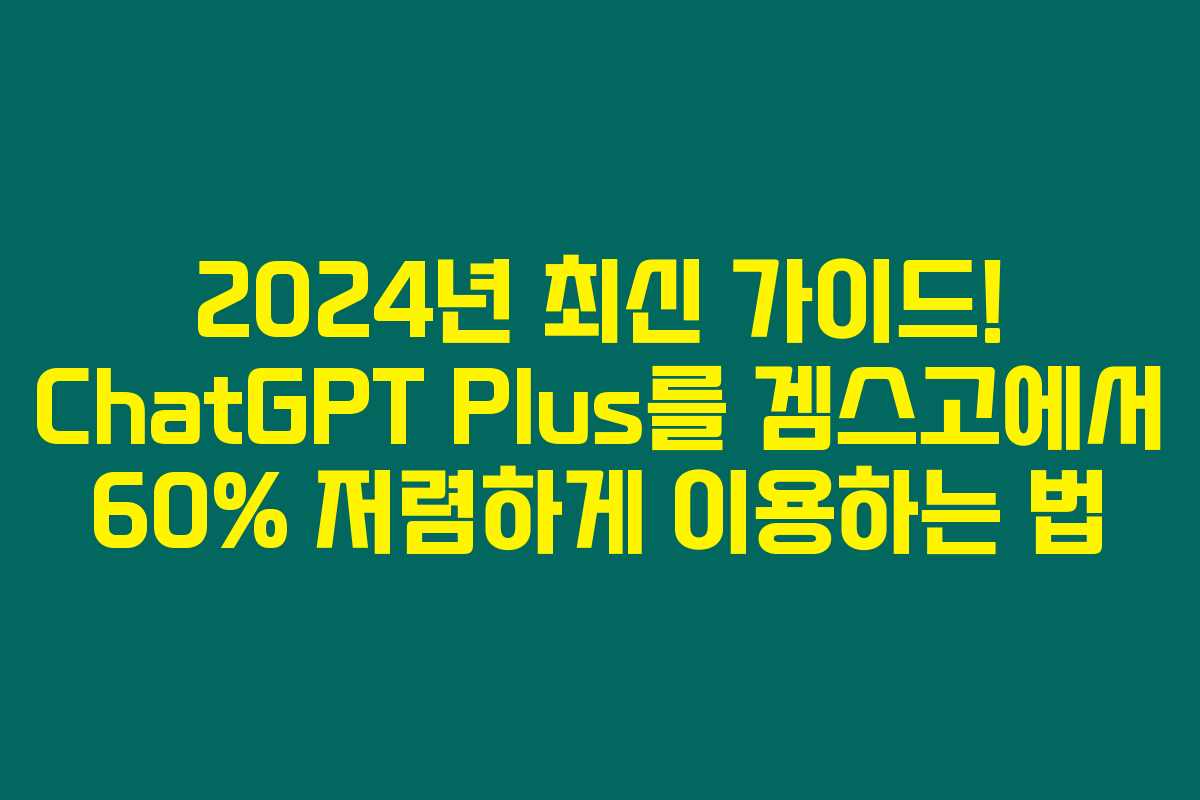 제가 직접 경험해본 바로는, ChatGPT Plus를 겜스고에서 60% 이상 저렴하게 이용할 수 있는 방법이 정말 훌륭하답니다. 아래를 읽어보시면 월 구독료를 절약할 수 있는 다양한 팁과 정보가 담겨 있어요. 특별히 프로모션 코드도 소개할게요!