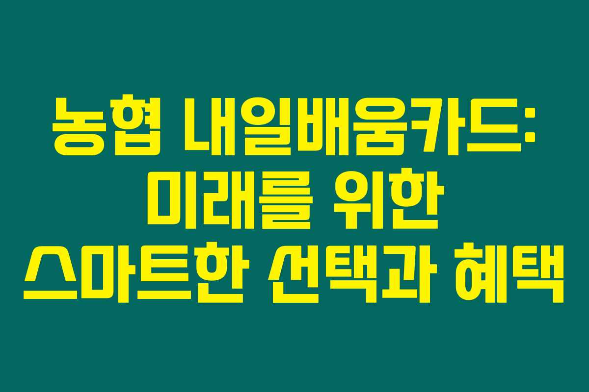 농협 내일배움카드: 미래를 위한 스마트한 선택과 혜택