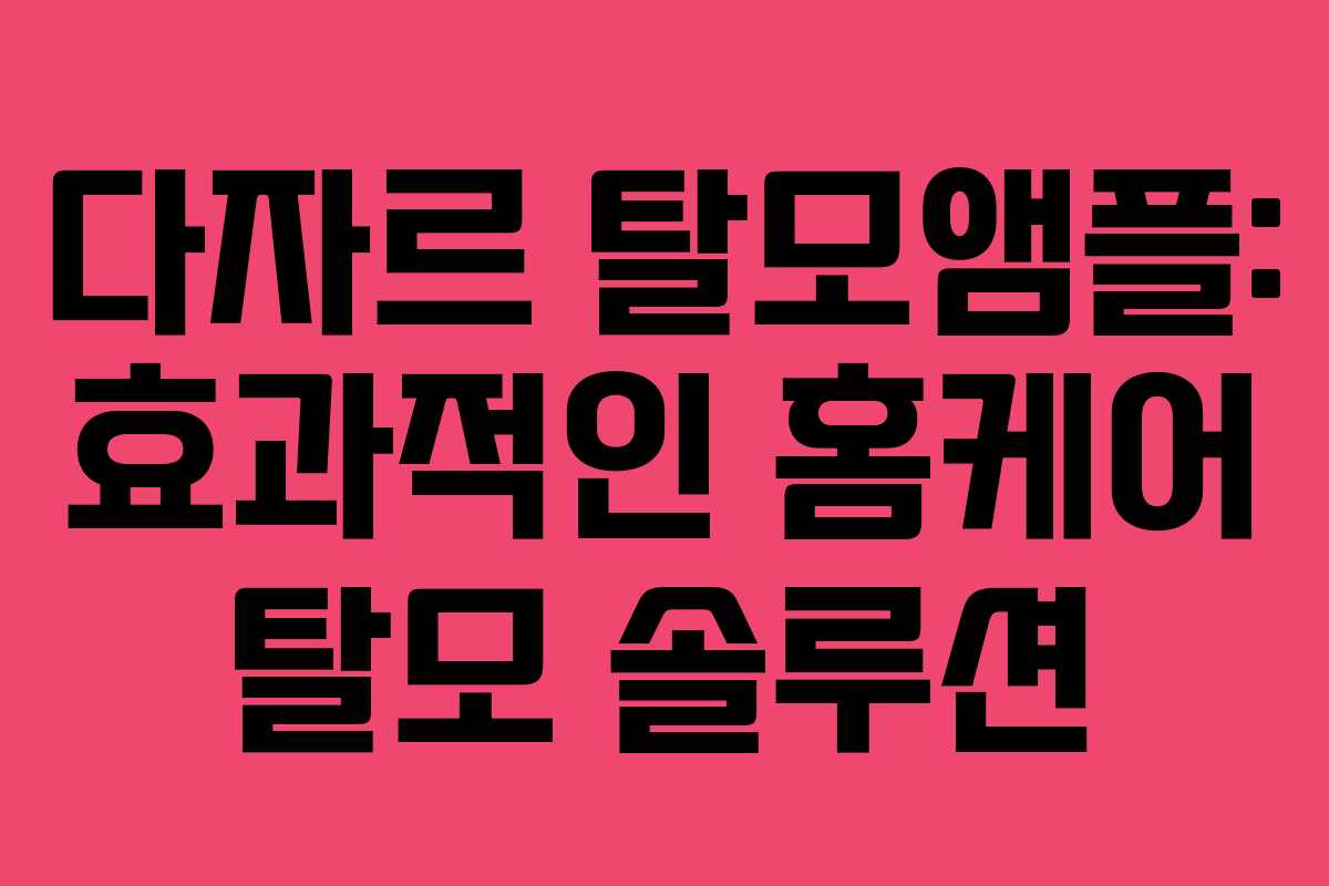 탈모는 서서히 진행되는 문제로, 초기 신호를 빠르게 인지하고 대처하는 것이 중요합니다. 이번 글에서는 다자르 탈모 앰플의 특징과 효능에 대해 자세히 살펴보겠습니다.