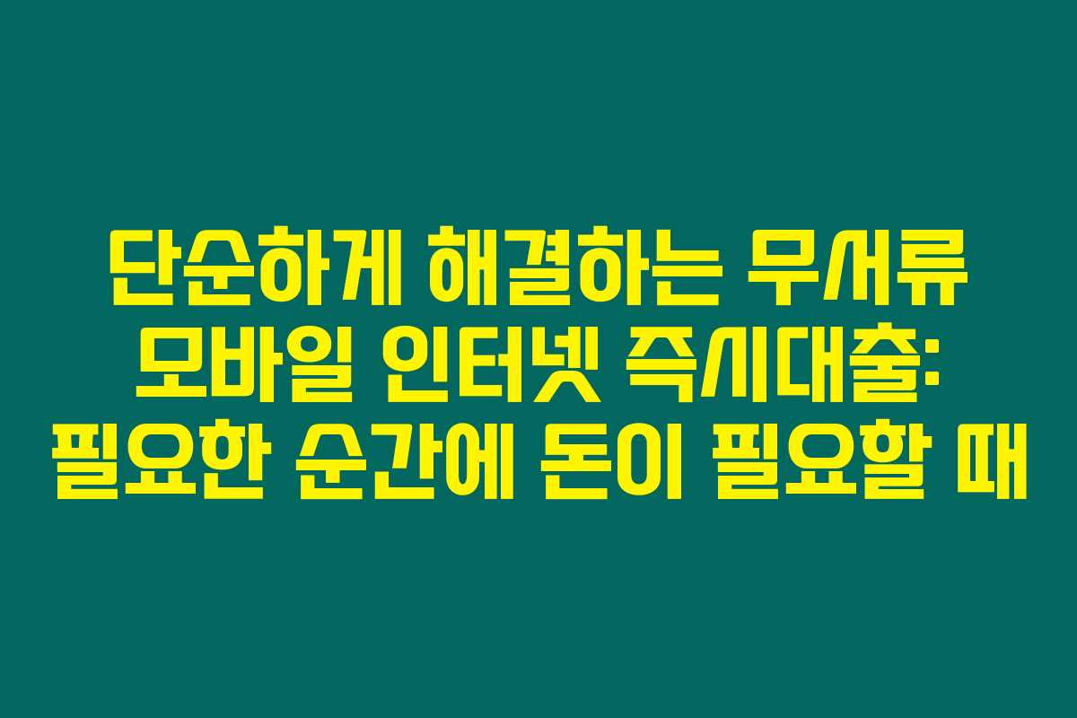 무서류 모바일 인터넷 즉시대출은 서류 제출 없이 온라인으로 간편하게 신청할 수 있는 대출 상품입니다. 급하게 자금을 필요로 할 때 유용하게 쓰일 수 있어요.
