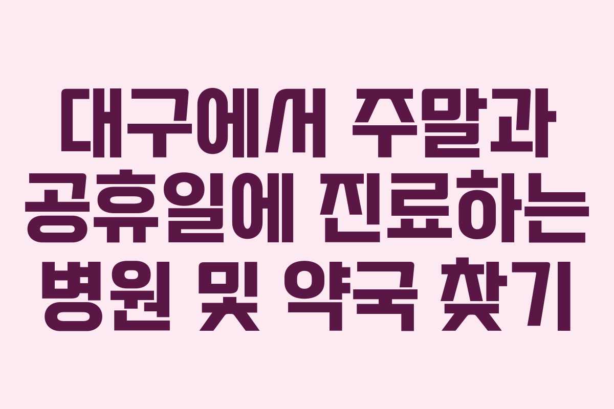 대구에서 주말과 공휴일에 진료하는 병원 및 약국 찾기