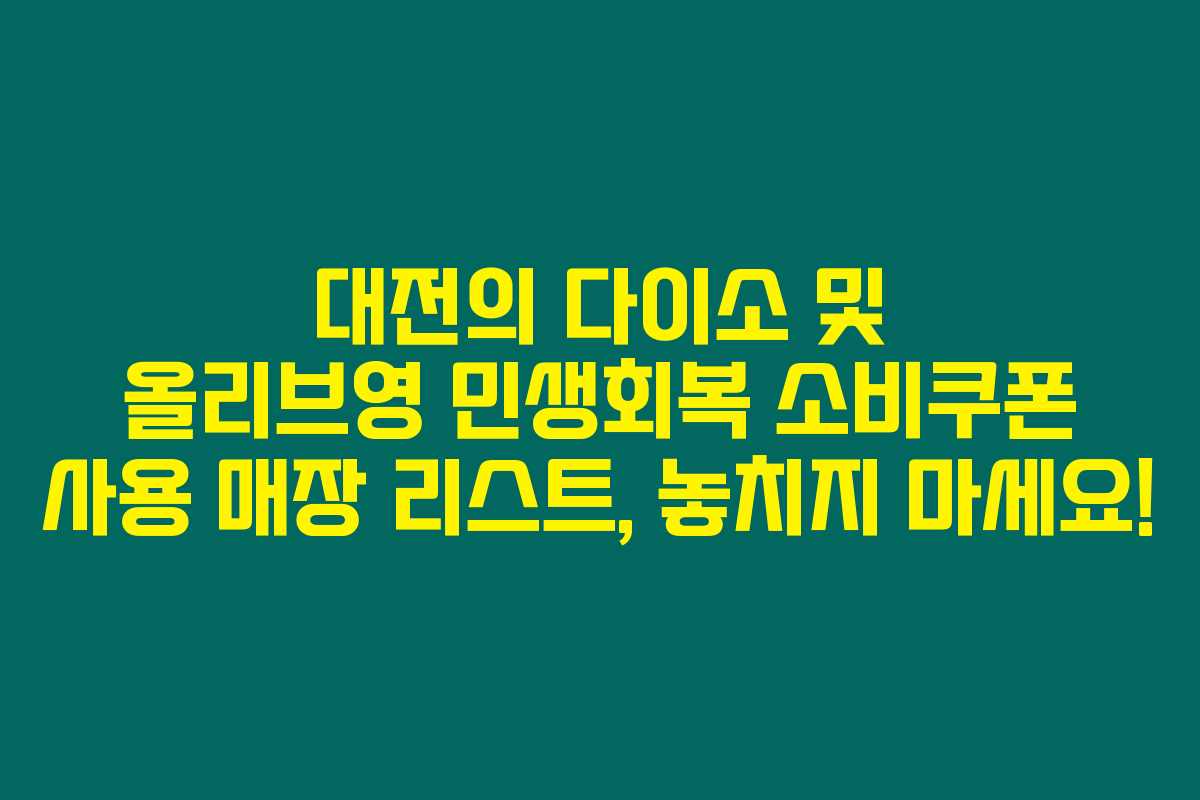 민생회복 소비쿠폰을 활용하고 싶은 분들은 주목하세요. 대전지역에서 사용할 수 있는 다이소와 올리브영 매장 리스트를 정리했어요. 과연 어떤 매장에서 사용이 가능할까요? 아래를 읽어보시면 소비쿠폰 사용에 대한 중요한 정보를 확인할 수 있습니다.