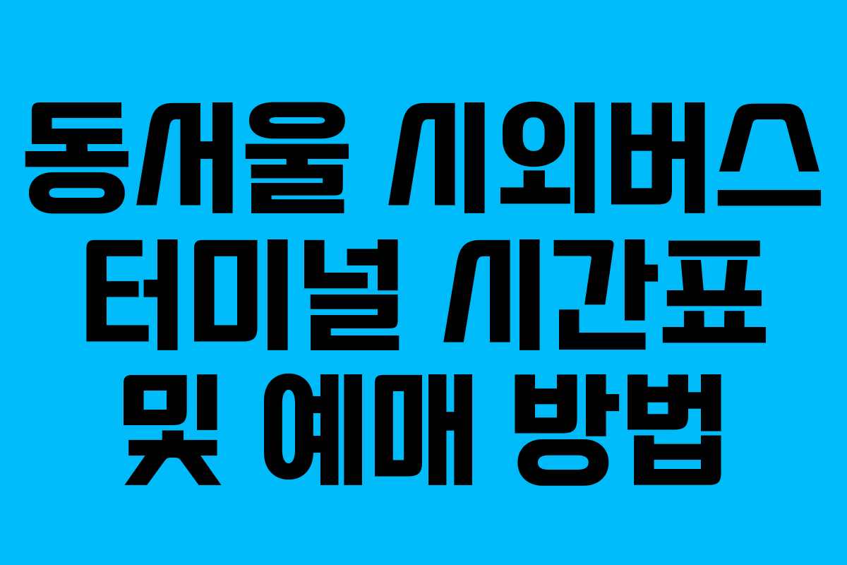동서울 시외버스 터미널은 서울에서 다양한 지역으로의 이동이 편리한 장소입니다. 대구, 광주, 울산, 포항, 창원, 부산 등 여러 주요 도시로 운행하는 시외버스를 제공하고 있으며, 각기 다른 시간대에 운영되고 있습니다. 이 글에서는 동서울 시외버스 터미널의 시간표와 예매 방법을 안내합니다.