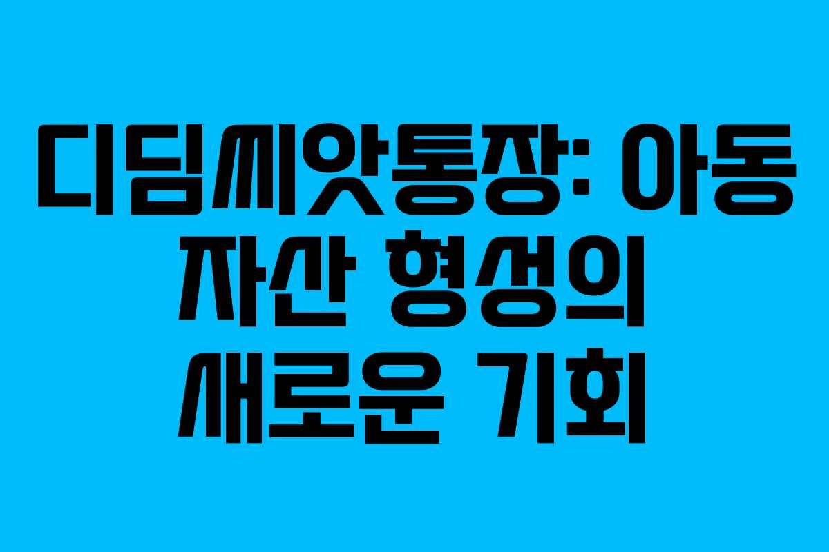 디딤씨앗통장: 아동 자산 형성의 새로운 기회