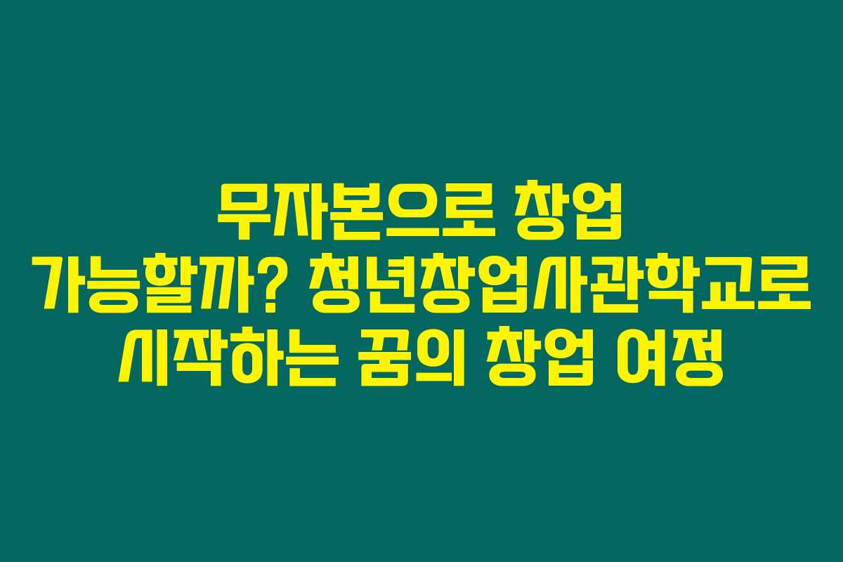 제가 알아본 바로는, 청년들이 취업의 어려움 속에서 창업으로 나아가고 있는 지금, 무자본 창업이 가능하다는 희망적인 사실이 있더라고요. 바로 ‘청년창업사관학교’라는 정부 지원 프로그램을 통해 창업을 꿈꾸는 청년들에게 필요한 다양한 지원을 받을 수 있습니다. 아래를 읽어보시면, 이 프로그램의 지원 내용과 신청 방법에 대해 구체적인 정보를 얻을 수 있을 것입니다.