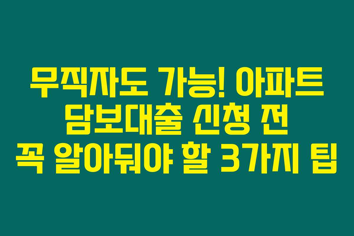 무직자도 가능! 아파트 담보대출 신청 전 꼭 알아둬야 할 3가지 팁