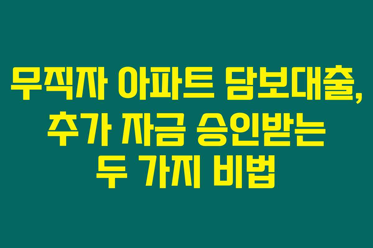 아파트 담보대출은 많은 사람들이 자금을 마련하기 위해 이용하는 편리한 금융상품입니다. 그러나 무직자라면 대출 신청이 독하게 어려운 경우가 많죠. 일반적인 절차는 그리 쉽지 않거든요. 하지만 걱정 마세요! 이번 글에서는 무직자도 아파트 담보대출과 추가 자금을 승인받을 수 있는 두 가지 비법을 알아보려고 해요. 아래를 읽어보시면 금전적으로 부담을 덜 수 있는 방법이 무엇인지 궁금증이 풀릴 거예요.