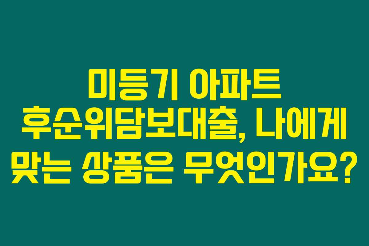 후순위담보대출은 원래의 담보 대출이 끝난 후, 추가로 제공되는 담보 대출을 의미해요. 첫 번째 담보 대출을 받기 위해선 주택의 등기가 필요하지만, 미등기 아파트의 경우 그 담보 대출을 받기 어려운 경우가 많아요. 제가 직접 경험해본 결과로는, 후순위담보대출은 이런 경우에 아주 유용한 선택이더라고요.