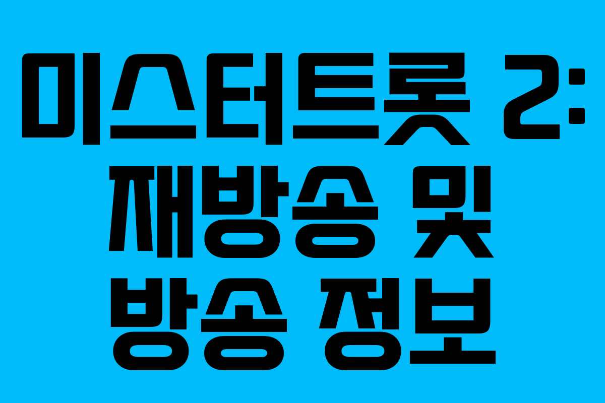 미스터트롯 2는 대한민국의 인기 트로트 오디션 프로그램으로, 시청자들의 많은 사랑을 받고 있습니다. 본 방송은 매주 목요일 오후 10시에 TV조선에서 방영되며, 다양한 트로트 가수들이 경연을 통해 실력을 겨루고 있습니다.
