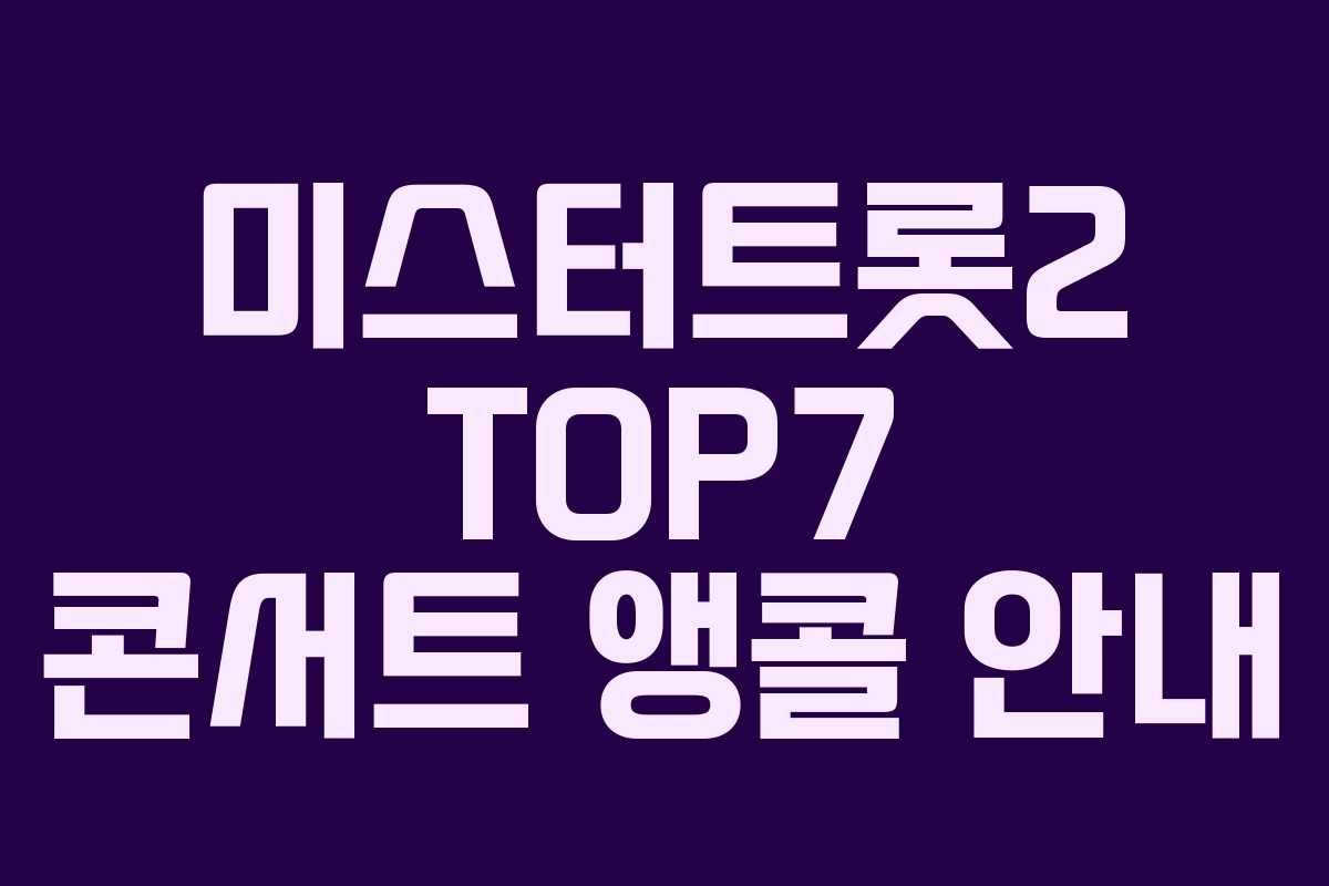 2024년 3월, 많은 팬들이 기다려온 미스터트롯2 TOP7 콘서트 앵콜이 개최됩니다. 이번 공연에서는 TOP7 아티스트들이 다시 모여 그들의 매력을 한껏 발산할 예정입니다.