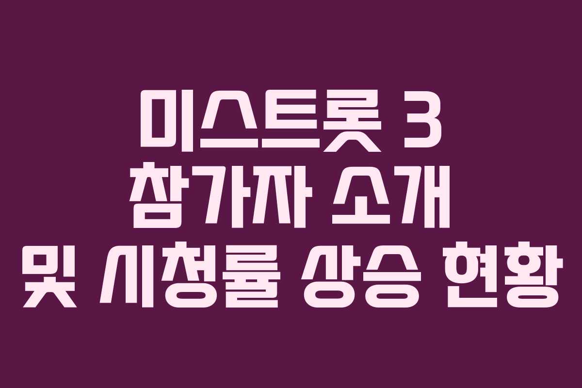 최근 대한민국에서 큰 인기를 끌고 있는 미스트롯 3는 많은 관심을 받고 있습니다. 프로그램이 진행됨에 따라 시청률이 상승하고 있으며, 6회에서는 17.4%라는 놀라운 기록을 세우며 동시간대 프로그램 중 최고 시청률을 기록했습니다. 이번 글에서는 미스트롯 3의 참가자 72인에 대한 소개와 그들의 목표를 살펴보겠습니다.