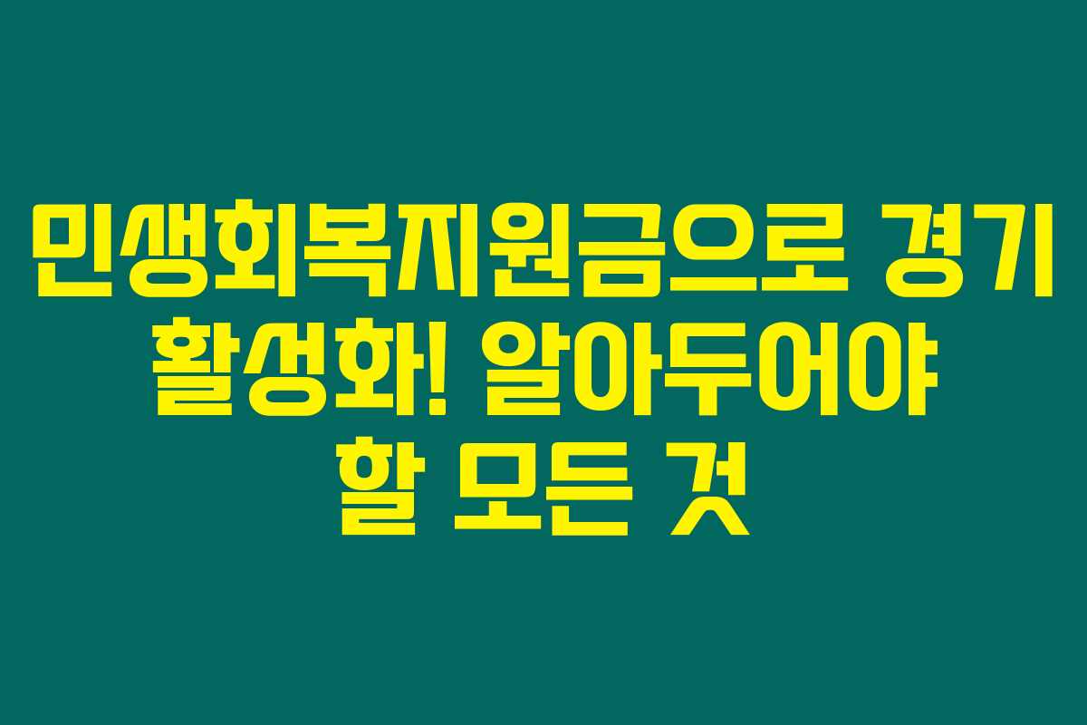 민생회복지원금으로 경기 활성화! 알아두어야 할 모든 것