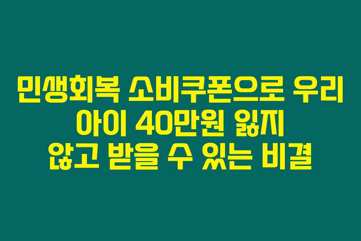 2025년 7월, 민생회복 소비쿠폰 지급 소식이 다가오고 있습니다. 특히 미성년 자녀에게 지급되는 40만원은 놓치기 아쉬운 혜택이지요. 아래를 읽어보시면, 제가 직접 경험한 팁과 노하우를 통해 이 소비쿠폰을 완벽하게 활용하는 방법을 낱낱이 공개하겠습니다.