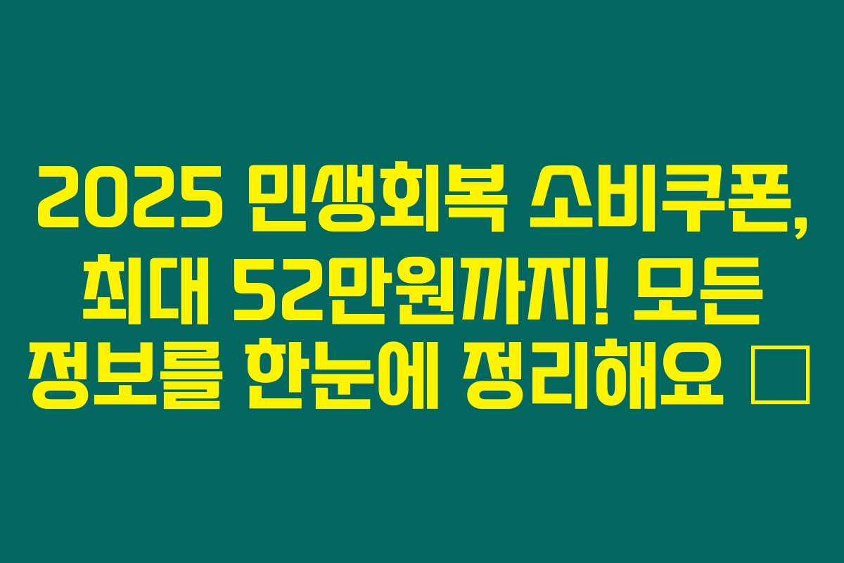 제가 직접 알아본 바로는 2025년 정부의 민생회복 소비쿠폰이 전 국민에게 최대 52만원이 지급된다는 놀라운 소식이 있습니다. 이 쿠폰은 지역사랑상품권이나 모바일 상품권 형태로 배포되어 생활비 부담을 덜어주는 데 큰 도움이 될 것으로 보입니다. 아래를 읽어보시면 지급 대상, 금액, 시기 및 사용처에 대한 자세한 내용이 정리되어 있습니다.