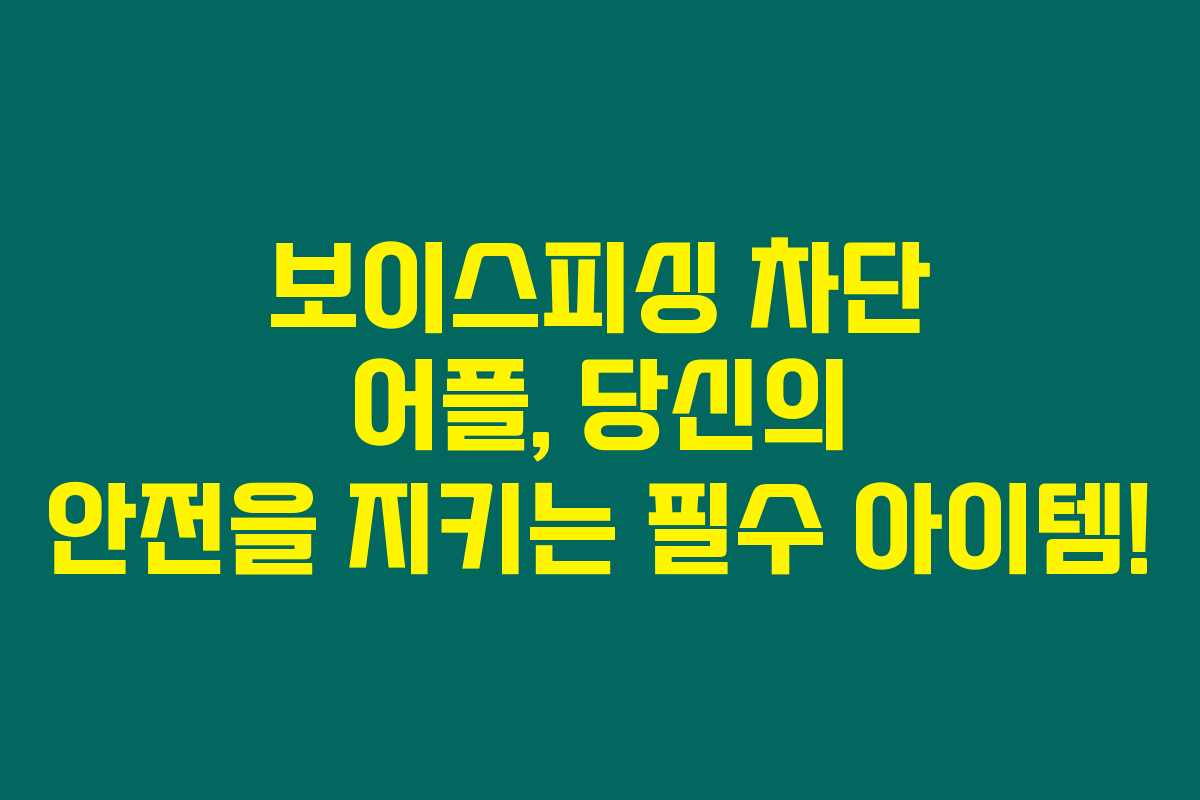 보이스피싱 차단 어플, 당신의 안전을 지키는 필수 아이템!