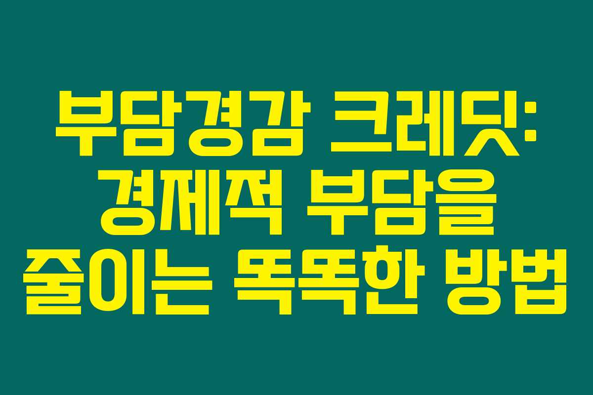 부담경감 크레딧을 효과적으로 활용하는 방법에는 여러 가지가 있습니다. 이를 통해 재정적인 안정을 찾을 수 있답니다.