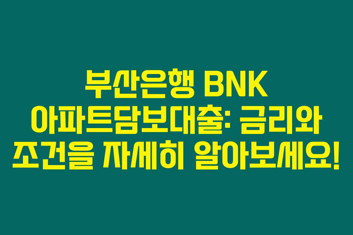 제가 알아본 바로는 부산은행의 BNK 아파트담보대출은 주택 마련을 고려하고 있는 분들에게 굉장히 큰 도움이 되는 상품이에요. 이 글에서는 부산은행의 대출 상품, 금리, 조건, 혜택 등 다양한 정보를 종합해 보았으니, 아래를 읽어보시면 자신의 상황에 가장 적합한 대출 상품을 찾는 데 도움이 될 것입니다.